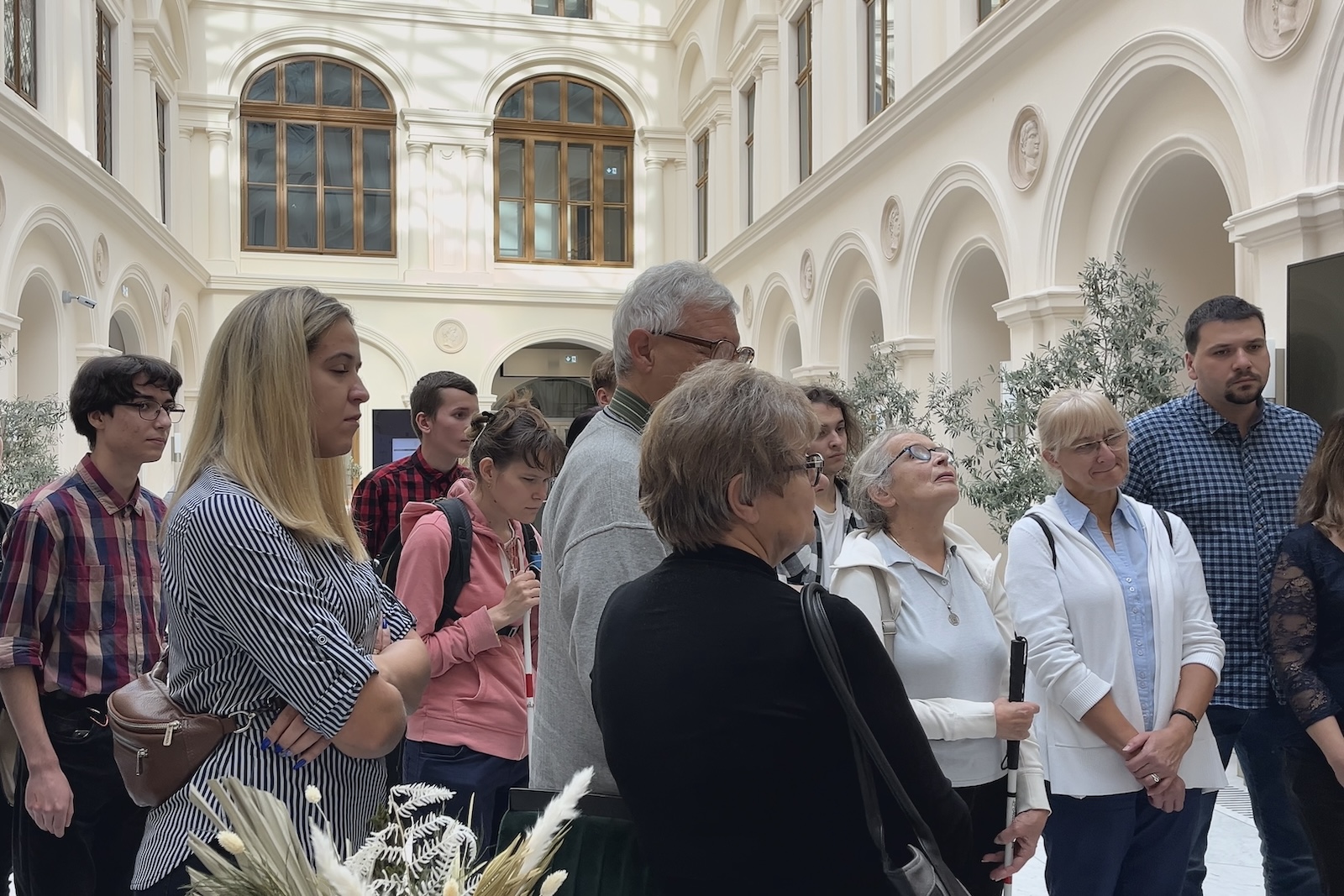Uczniowie klas licealnych zostali wcześniej przygotowani do pomocy w oprowadzaniu osób z dysfunkcjami wzroku.