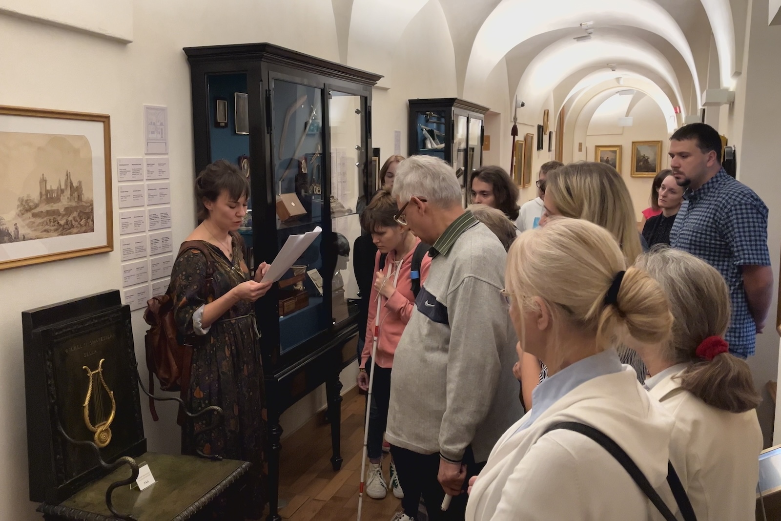 Założeniem projektu było stworzenie przestrzeni odbioru sztuki, która przekracza granice zmysłów. Innowacyjne oprowadzenie łączyło opisy audiodeskrypcyjne z opowieścią kuratorską, muzyką na żywo, dotykiem, zapachem, tworząc synestezyjny kontekst dla dzieł sztuki.